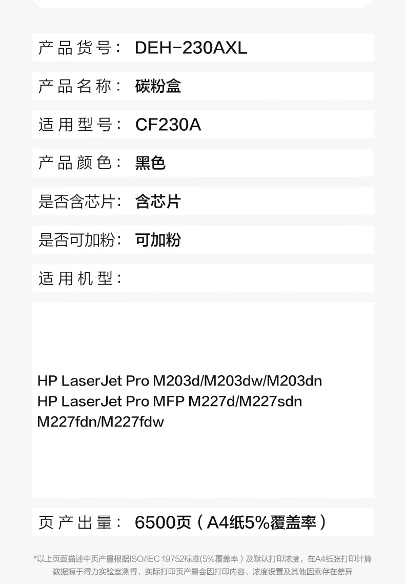 得力(deli)30a硒鼓 CF230A硒鼓适用惠普M203d M203dn M203dw M227fdn/fdw打印机粉盒 带芯片超大容量1支装