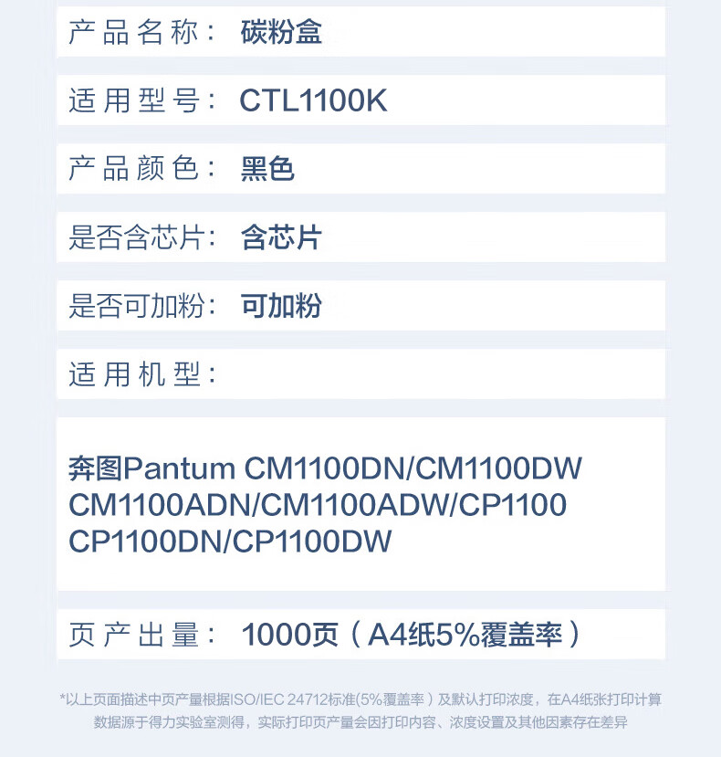 得力(deli)CTL-1100K黑色粉盒适用奔图 CP1100 CM1100DN CP1100DN CM1100DW CM1100ADW CM1100ADN打印机硒鼓墨盒