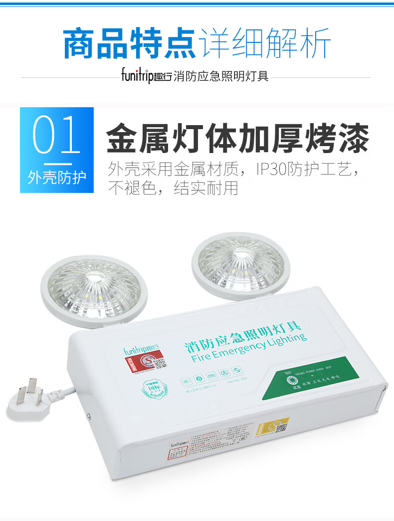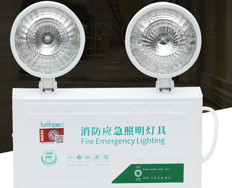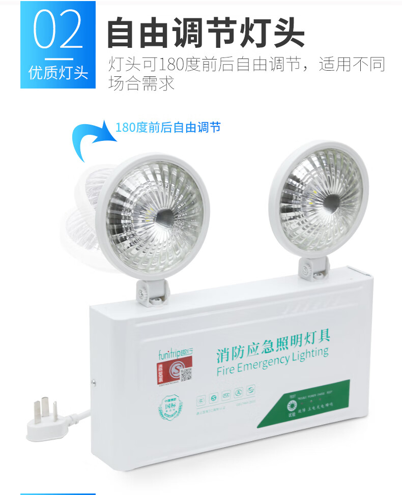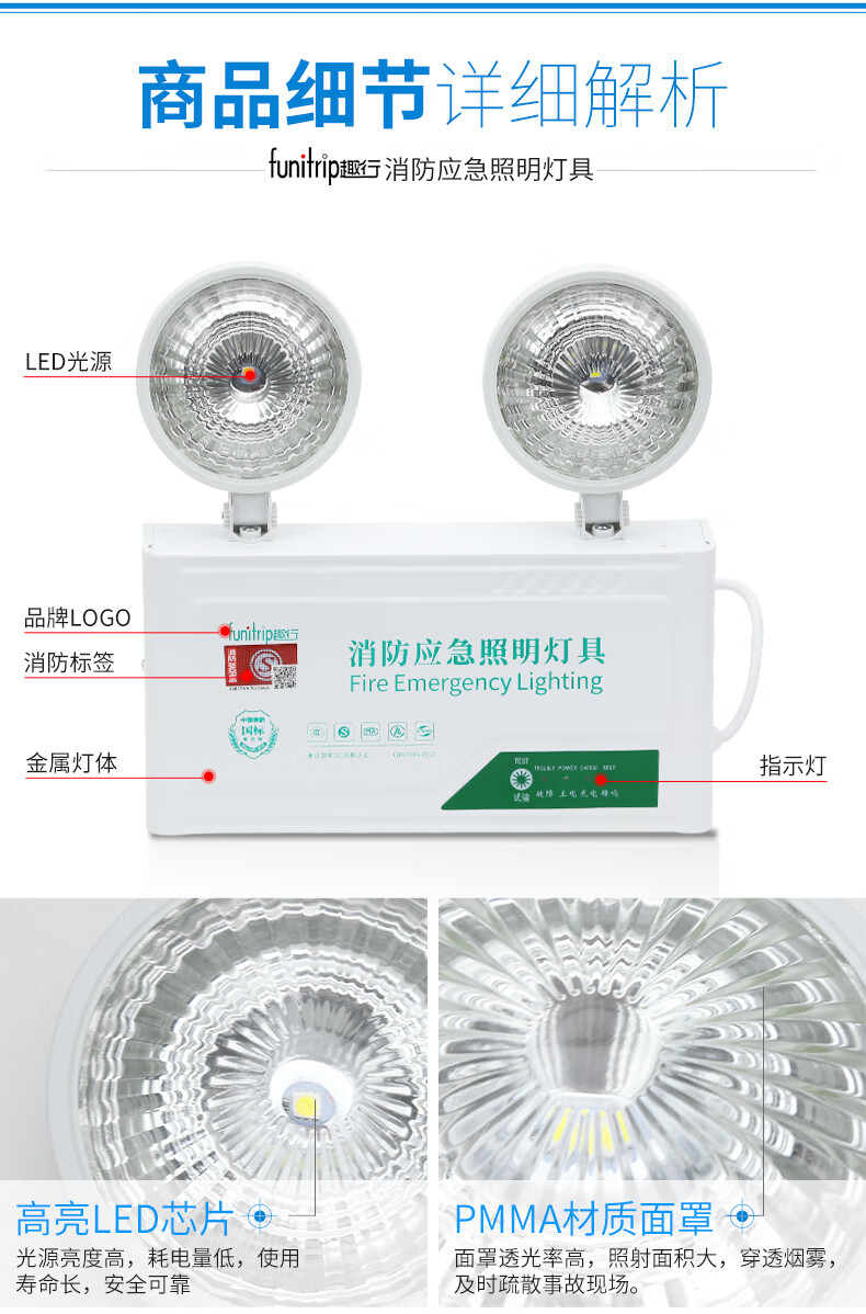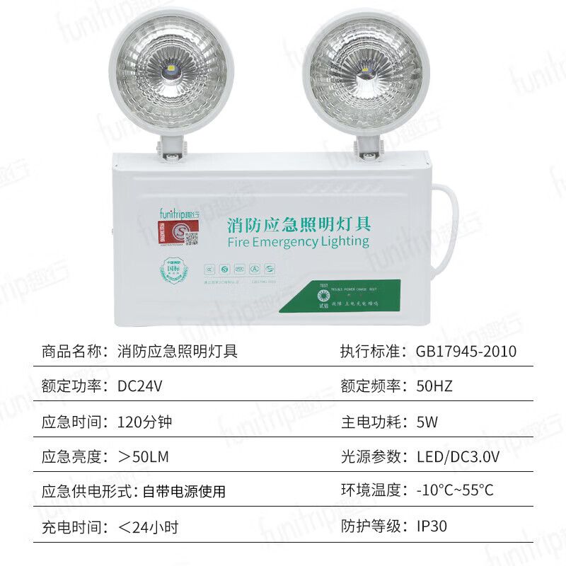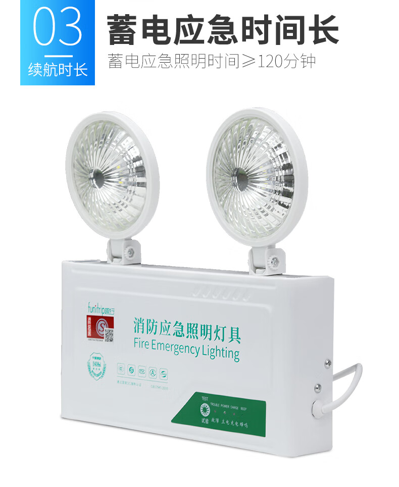 趣行国标应急灯 120分钟双头LED消防应急停电照明灯安全出口指示灯