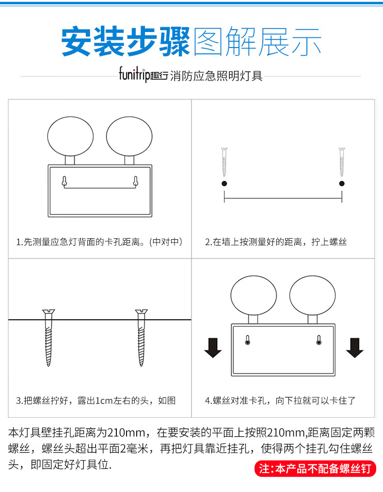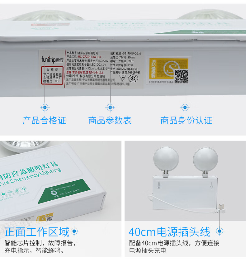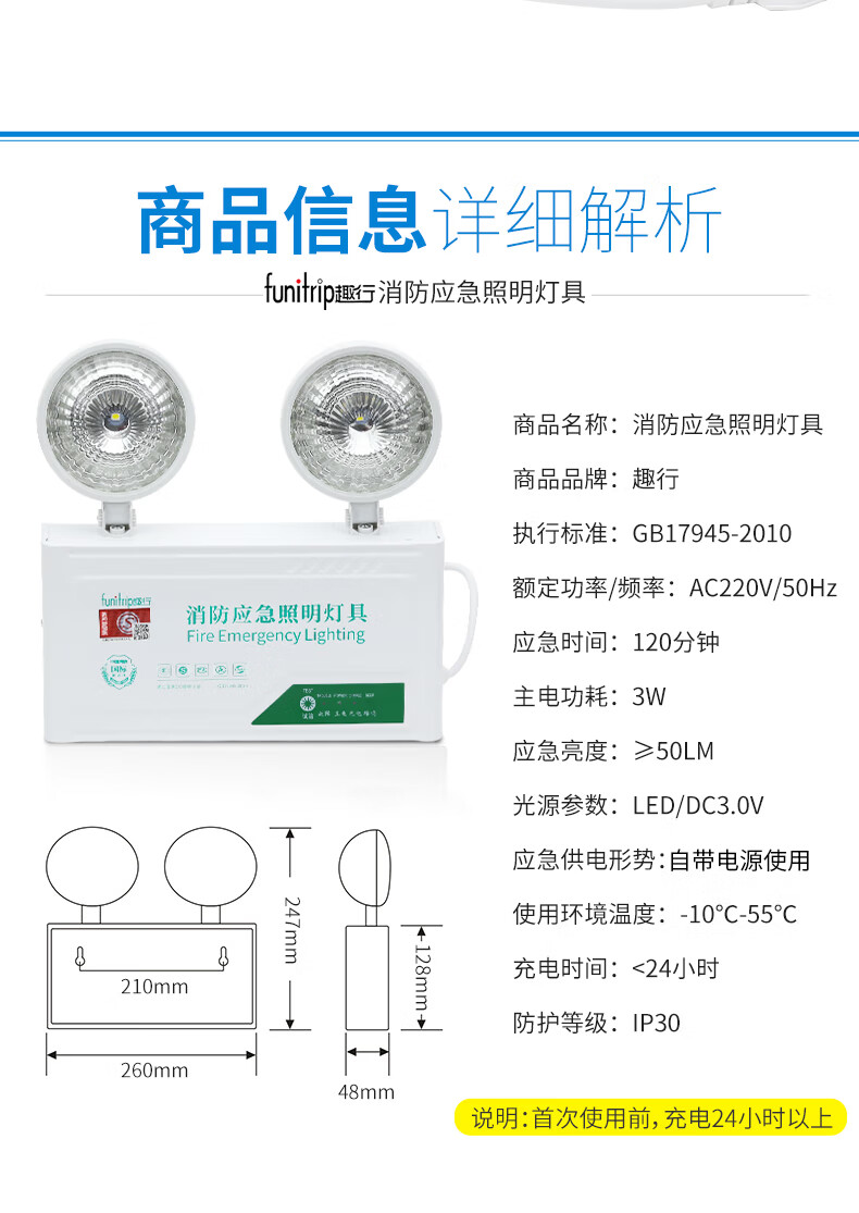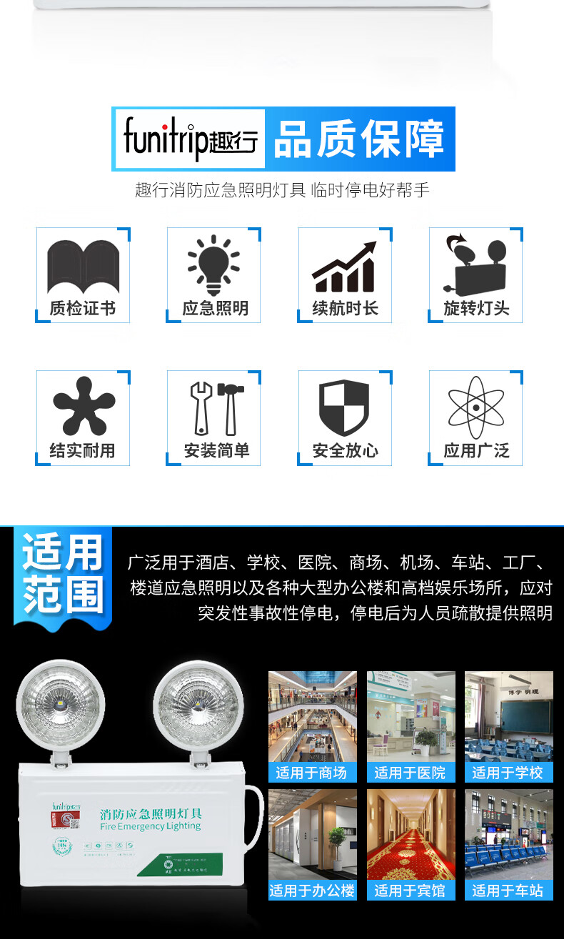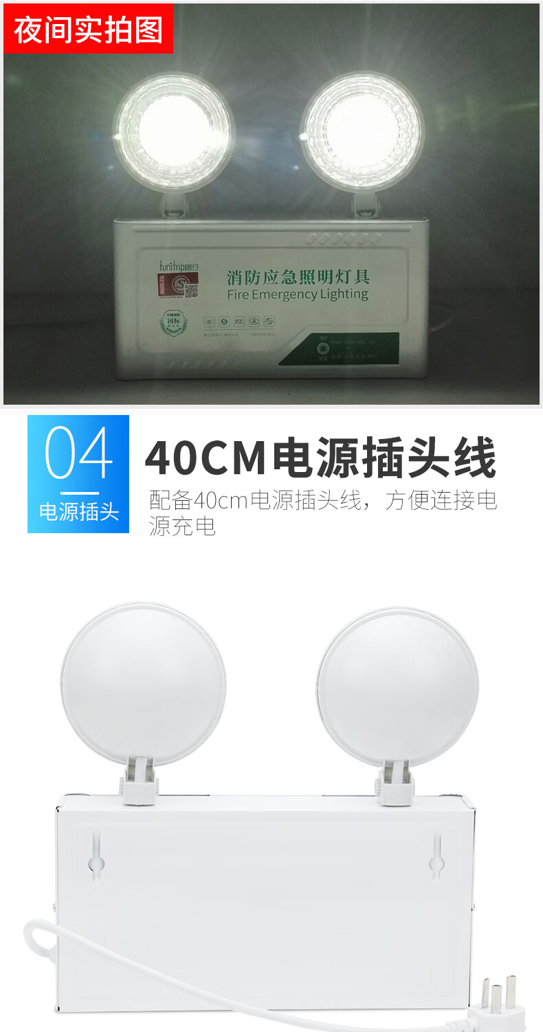 趣行国标应急灯 120分钟双头LED消防应急停电照明灯安全出口指示灯