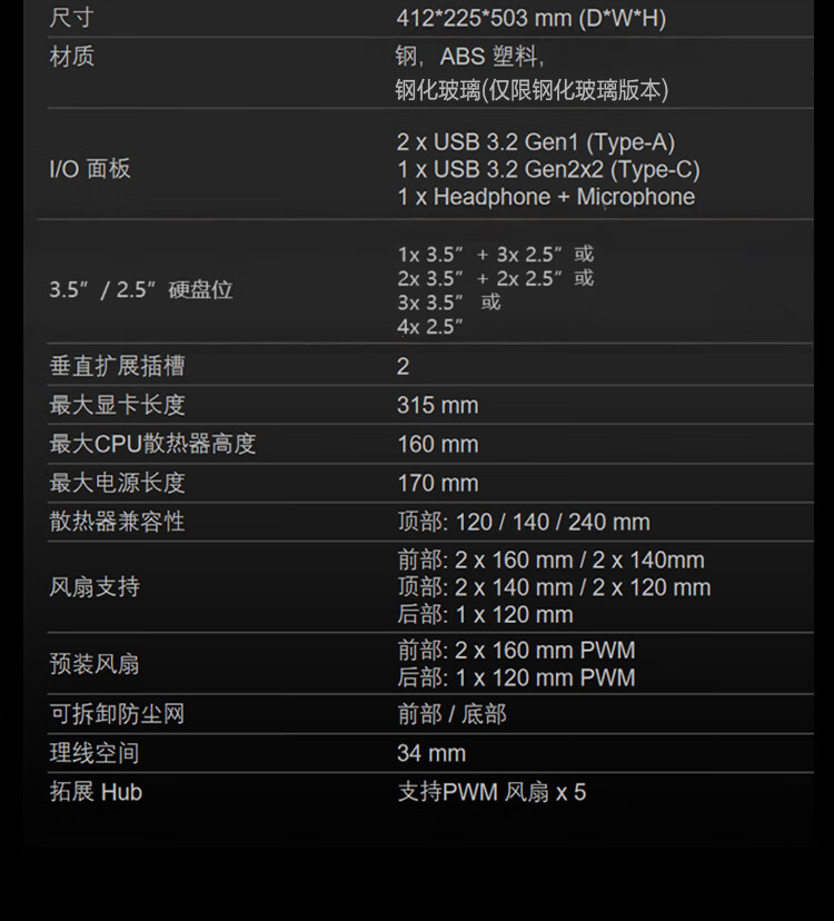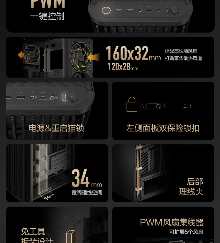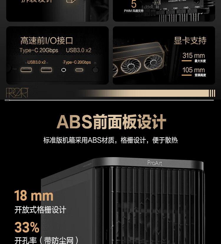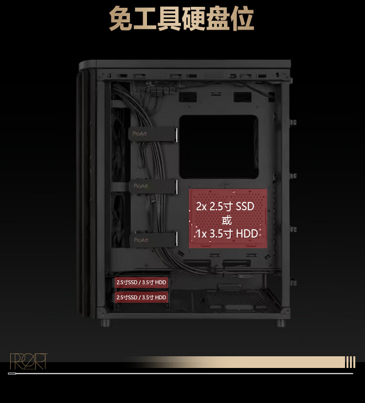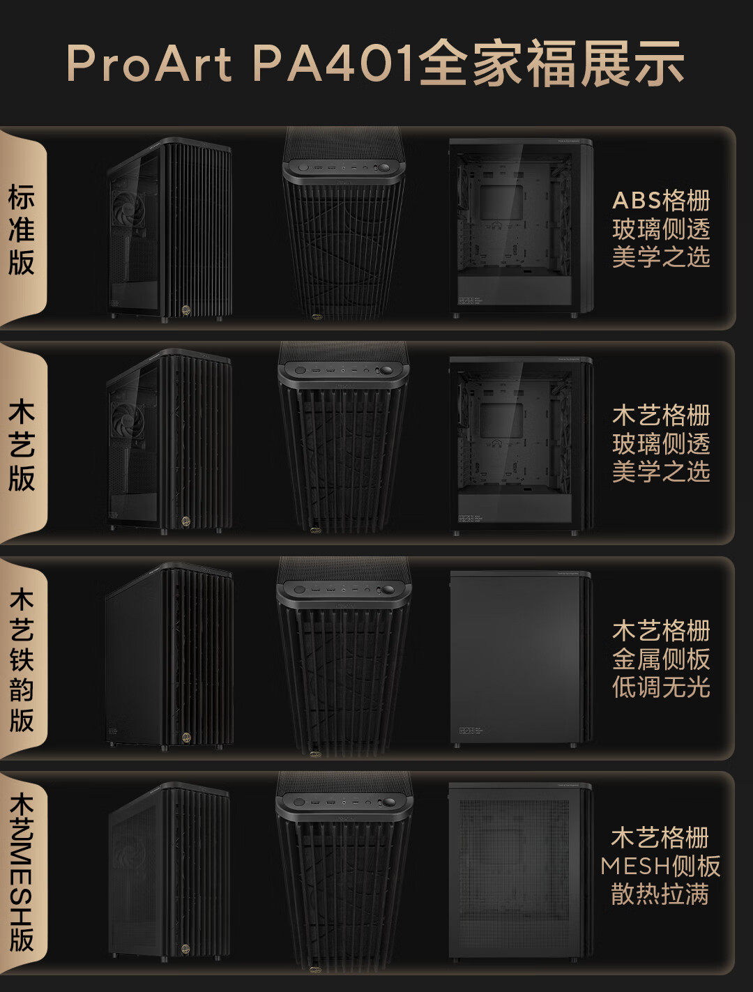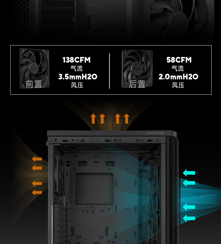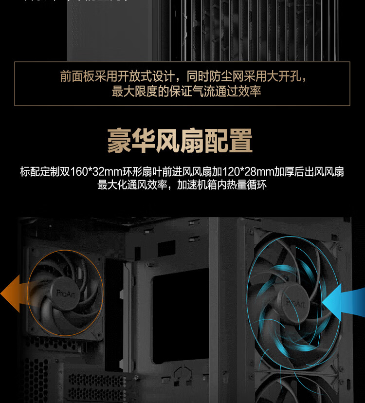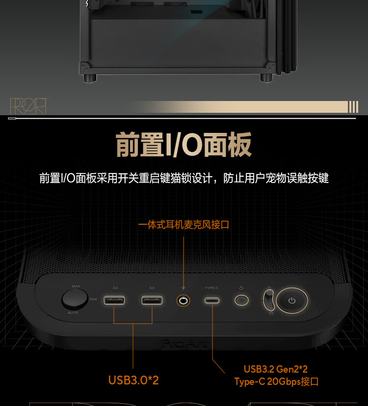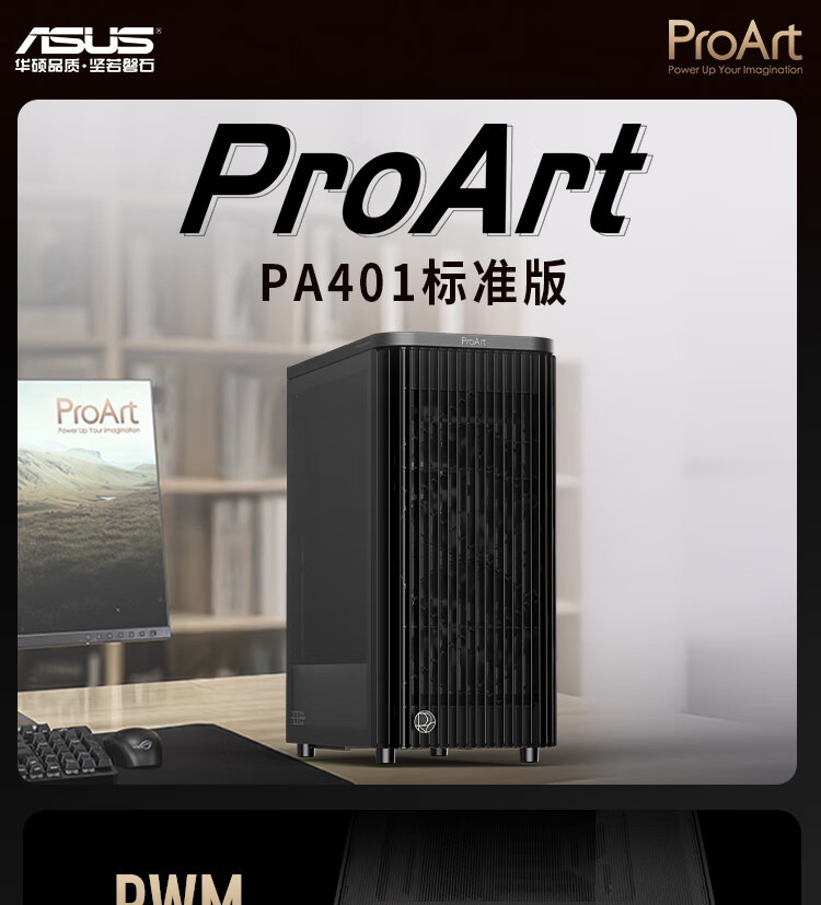 华硕ProArt创艺国度PA401常规版机箱 强力散热/免工具拆装/电源按键锁/PWM开关