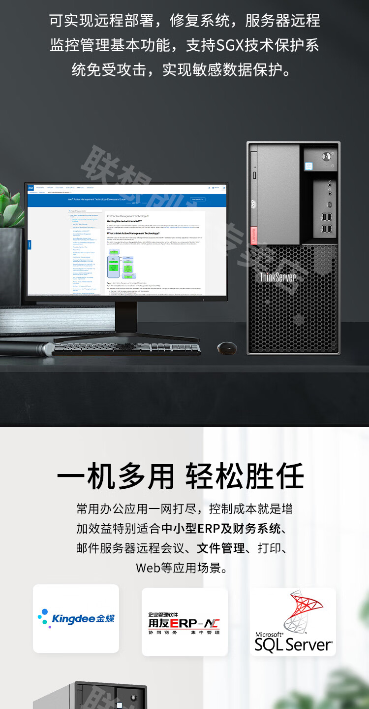 联想(Lenovo)ThinkServer TS90X ST45V3 小型塔式服务器主机 金蝶用友ERP财务软件办公电脑 【TS90X】至强E2324G 四核 3.1GHz 16G内存丨2x512G