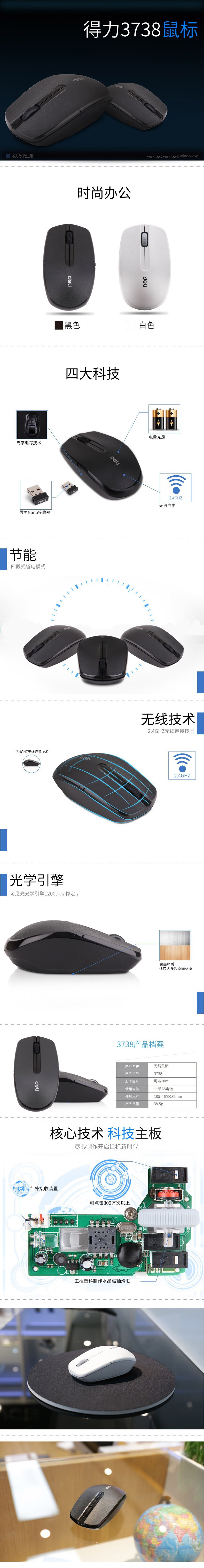 得力3738无线鼠标黑色家用办公移动便携 笔记本台式电脑鼠标 得力3738无线鼠标(黑)