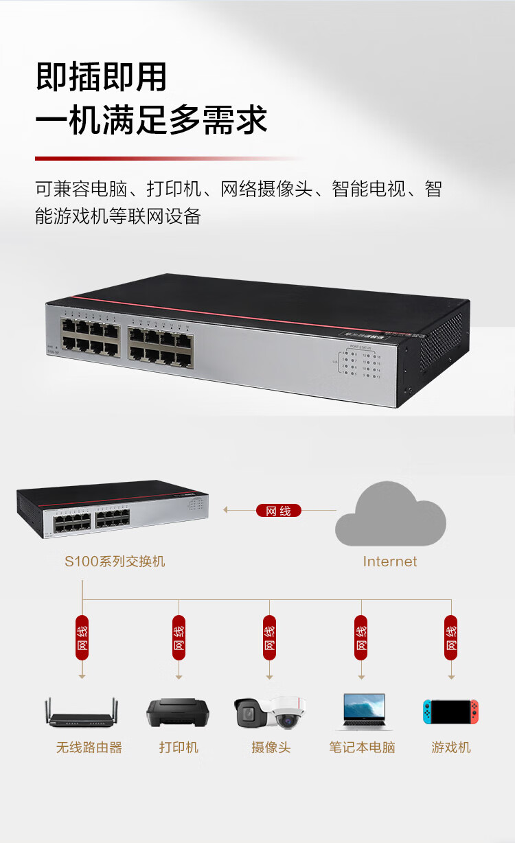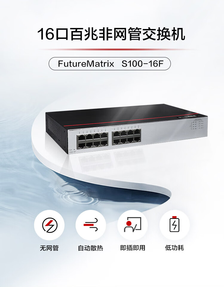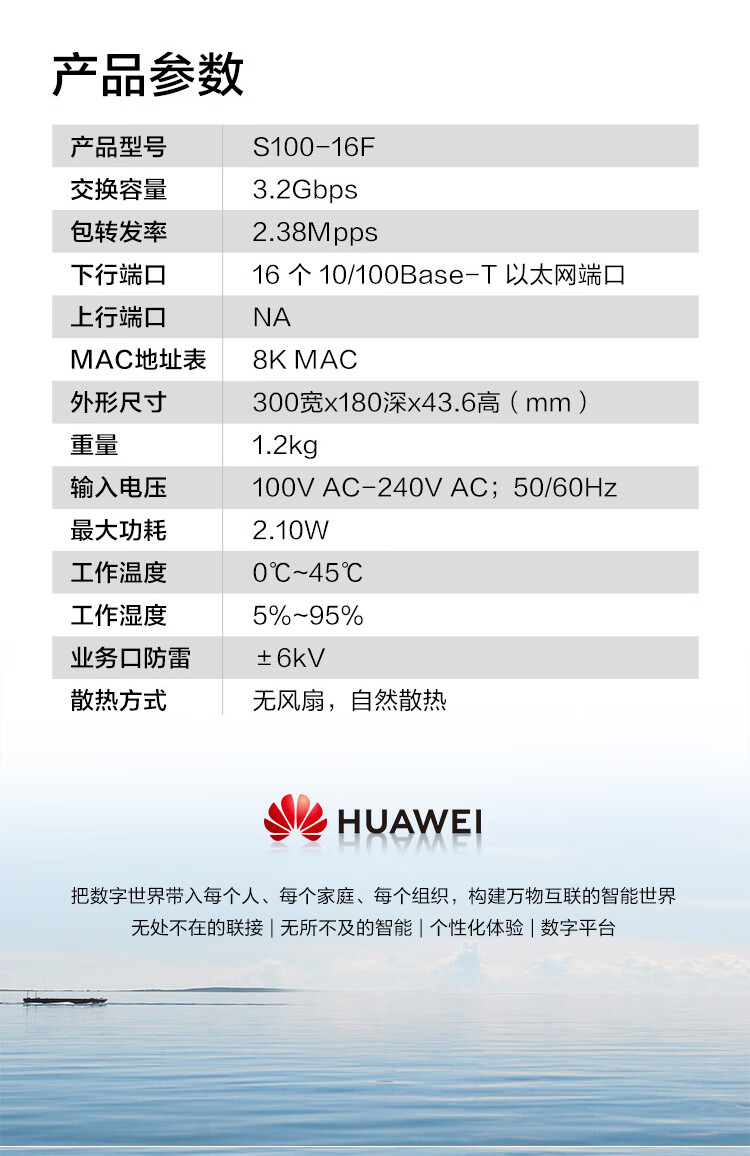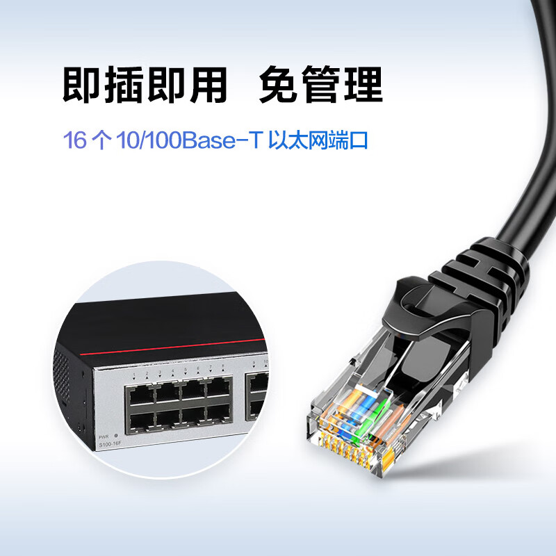 华为数通智选S100-16F 16口百兆交换机企业级非网管网络分流器网线分线器即插即用中小办公室宿舍