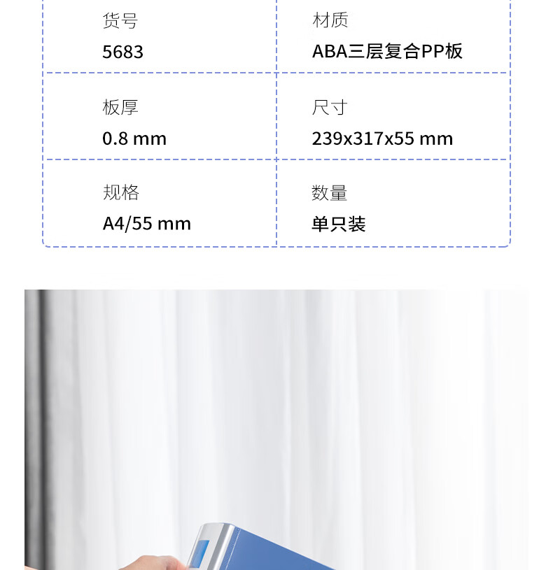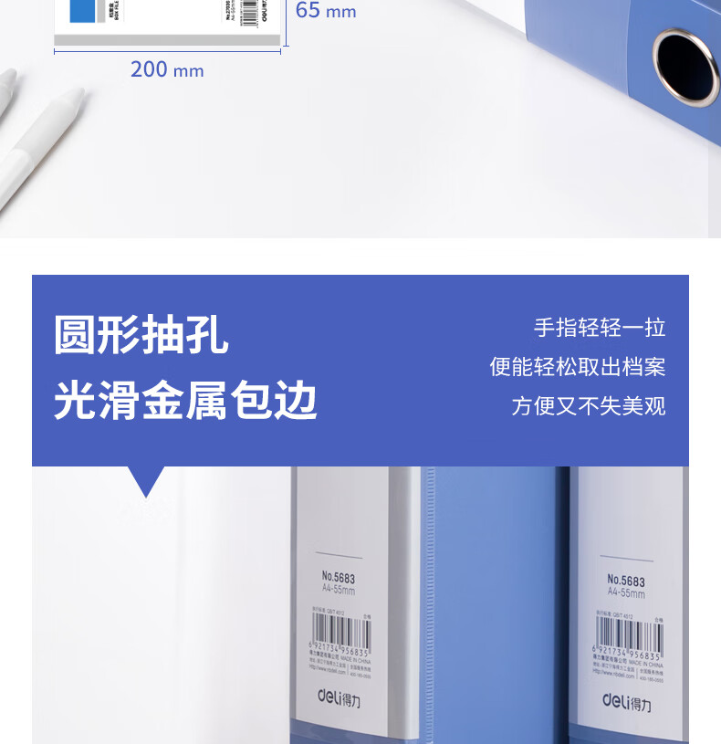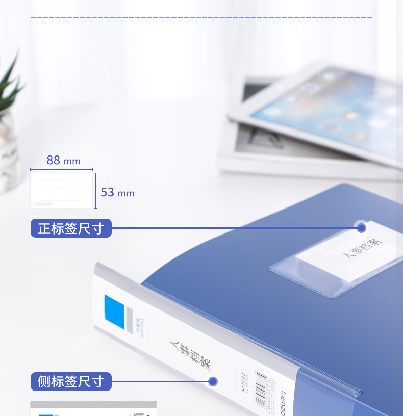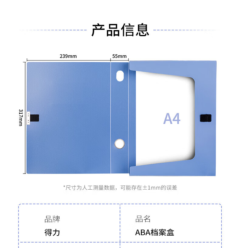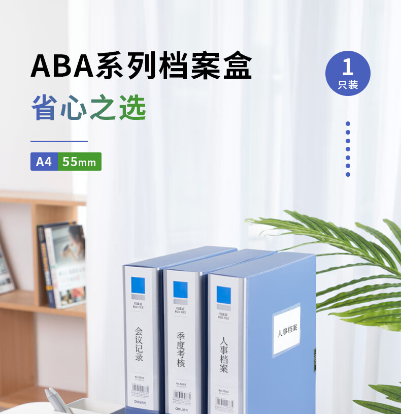 得力(deli)1只55mmA4塑料文件盒档案盒 加厚资料盒 财务凭证考试收纳 5683