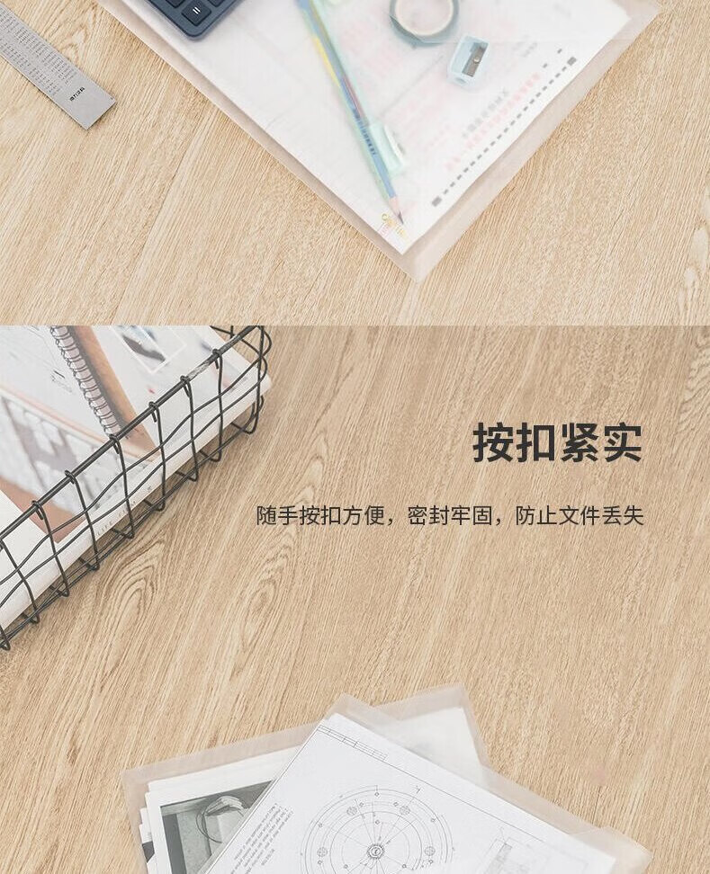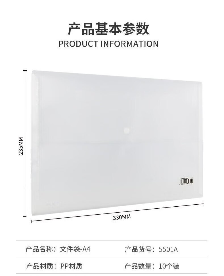 得力(deli)5501A-文件袋A4 纽扣袋 文件袋 资料袋 文件套 办公用品 透明文件袋 10个装
