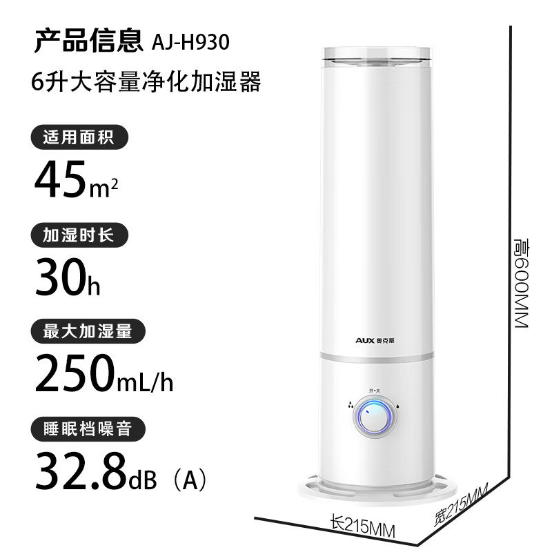 奥克斯(AUX)加湿器 卧室轻音婴儿办公室空气加湿净化桌面大容量 家用大雾量加湿器