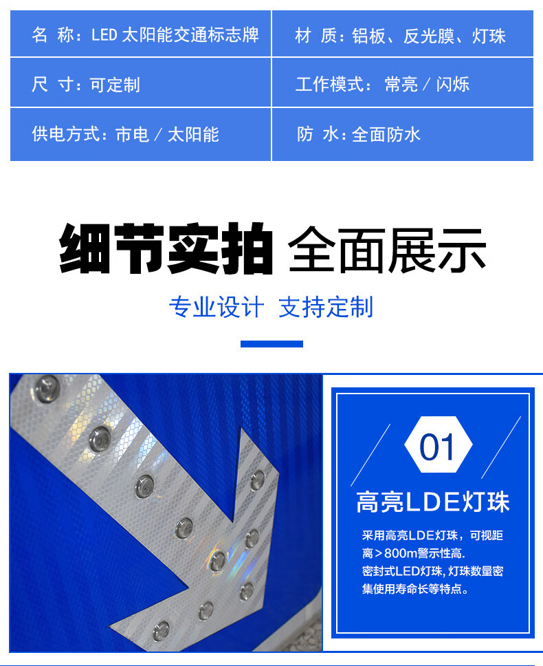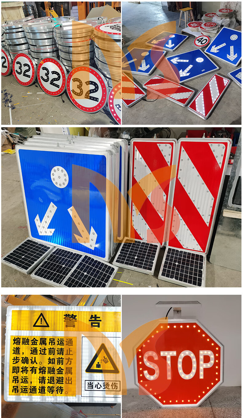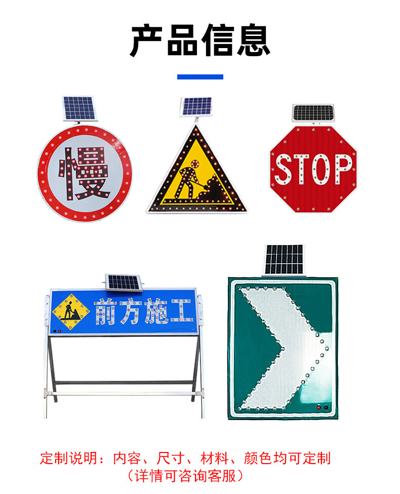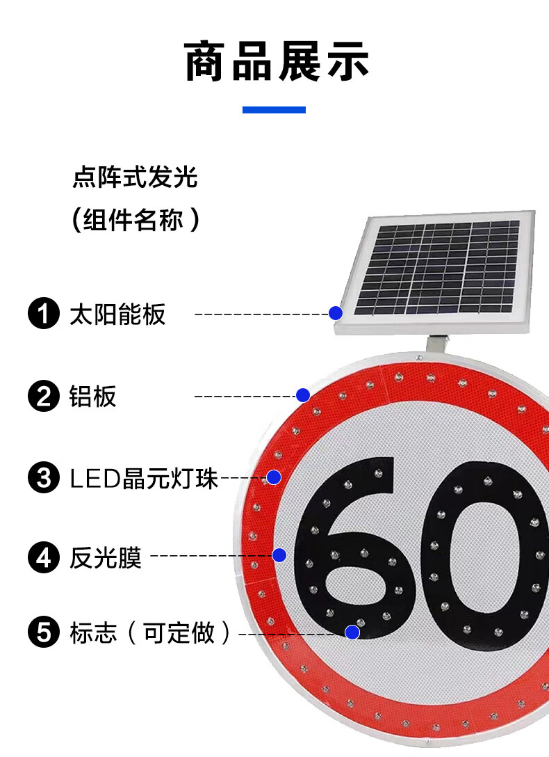 LED太阳能标志牌 限高限速交通标牌 定制发光三角路牌道路指示牌 分道方牌60×60cm