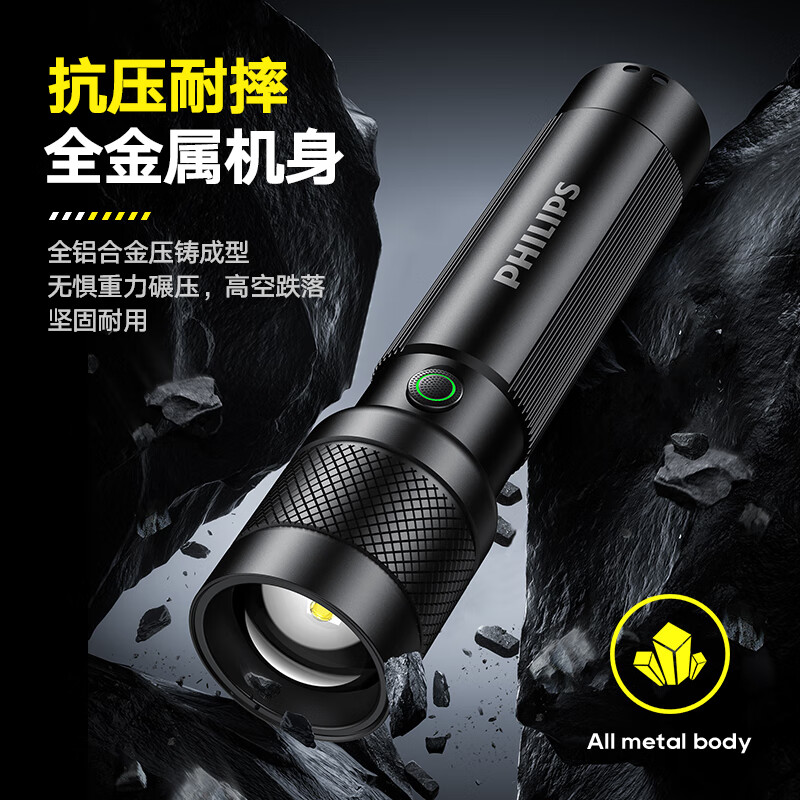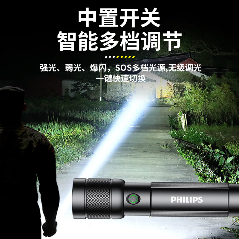 飞利浦(PHILIPS)手电筒强光手电超亮200000穿天家用小型军户外照明应急灯SFL2247